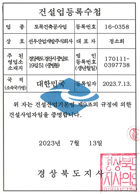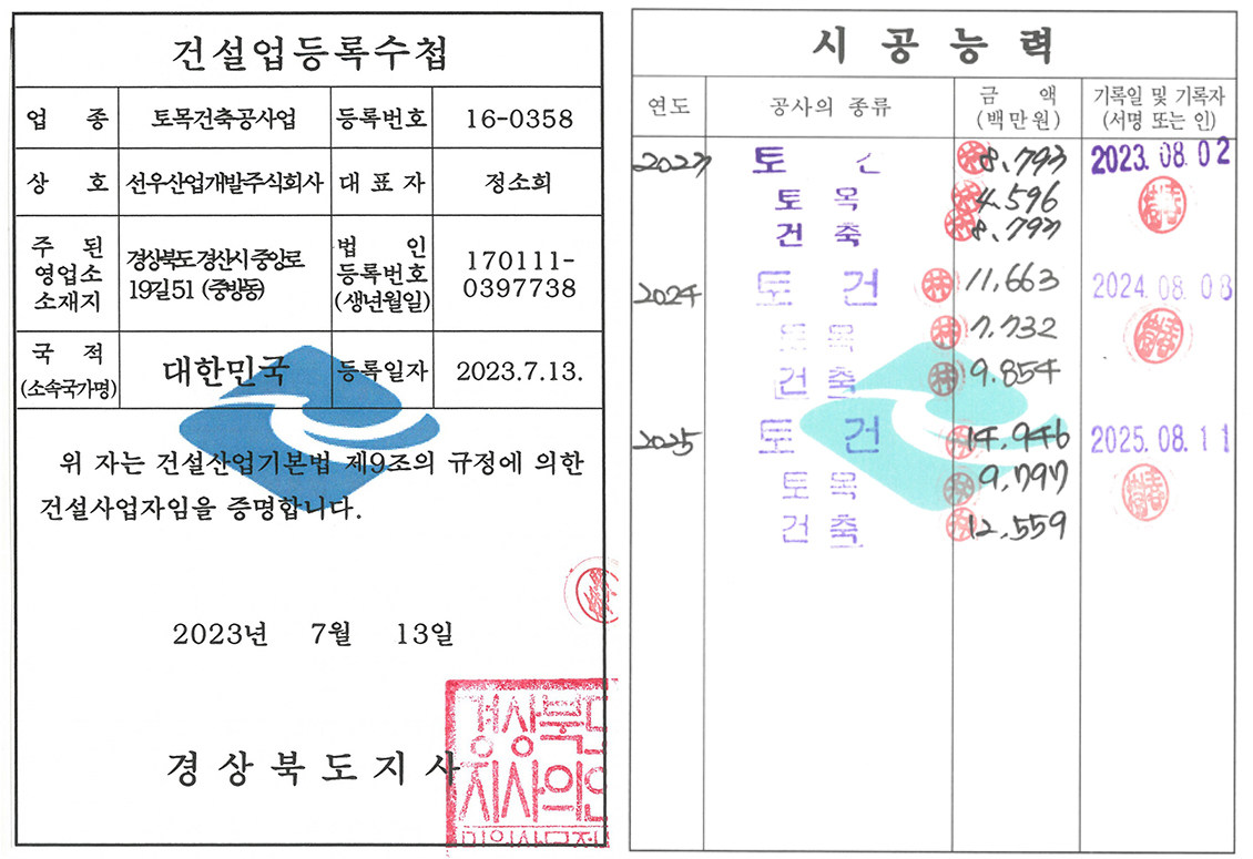 건설업등록수첩(토목건축공사업)